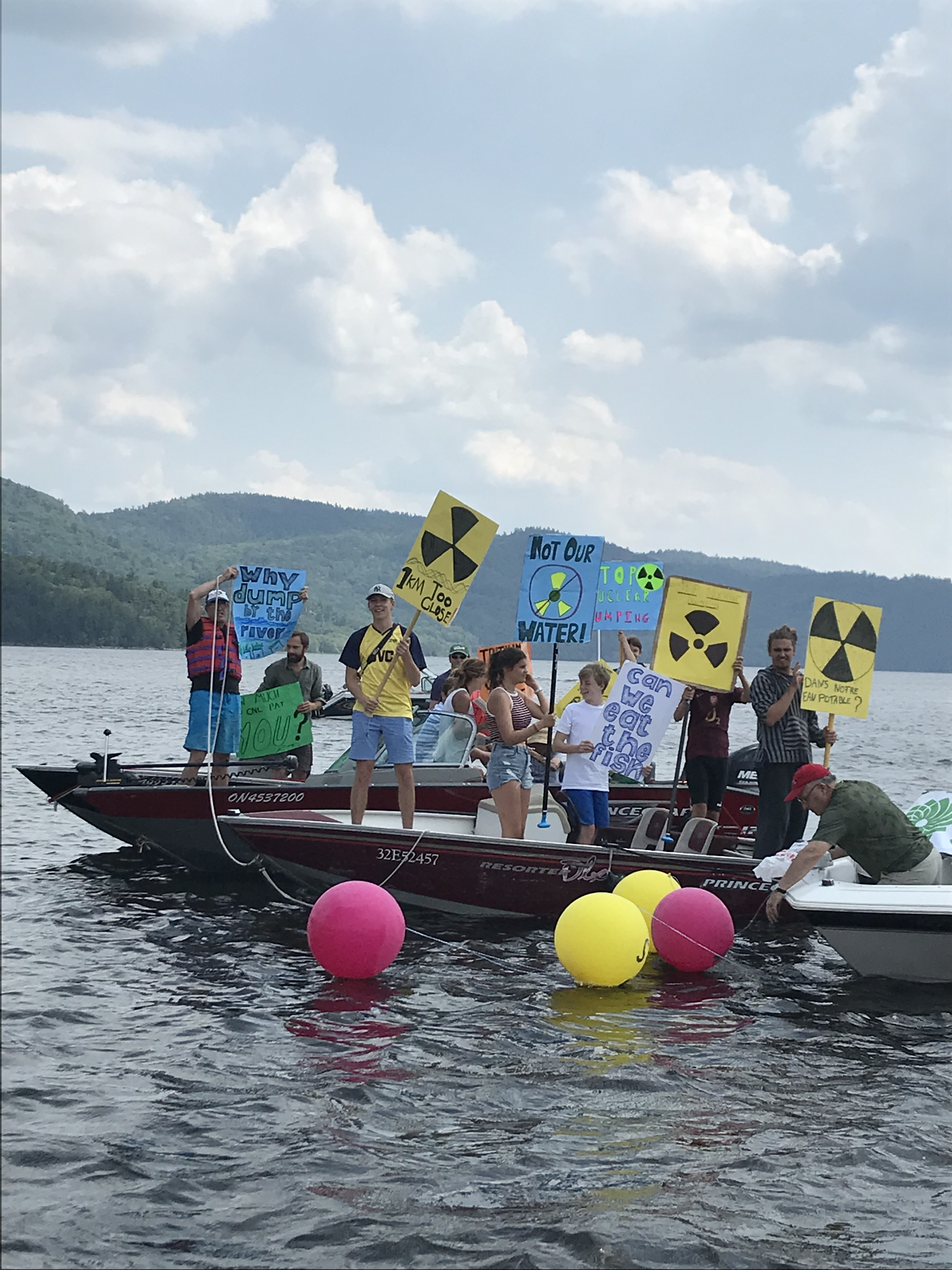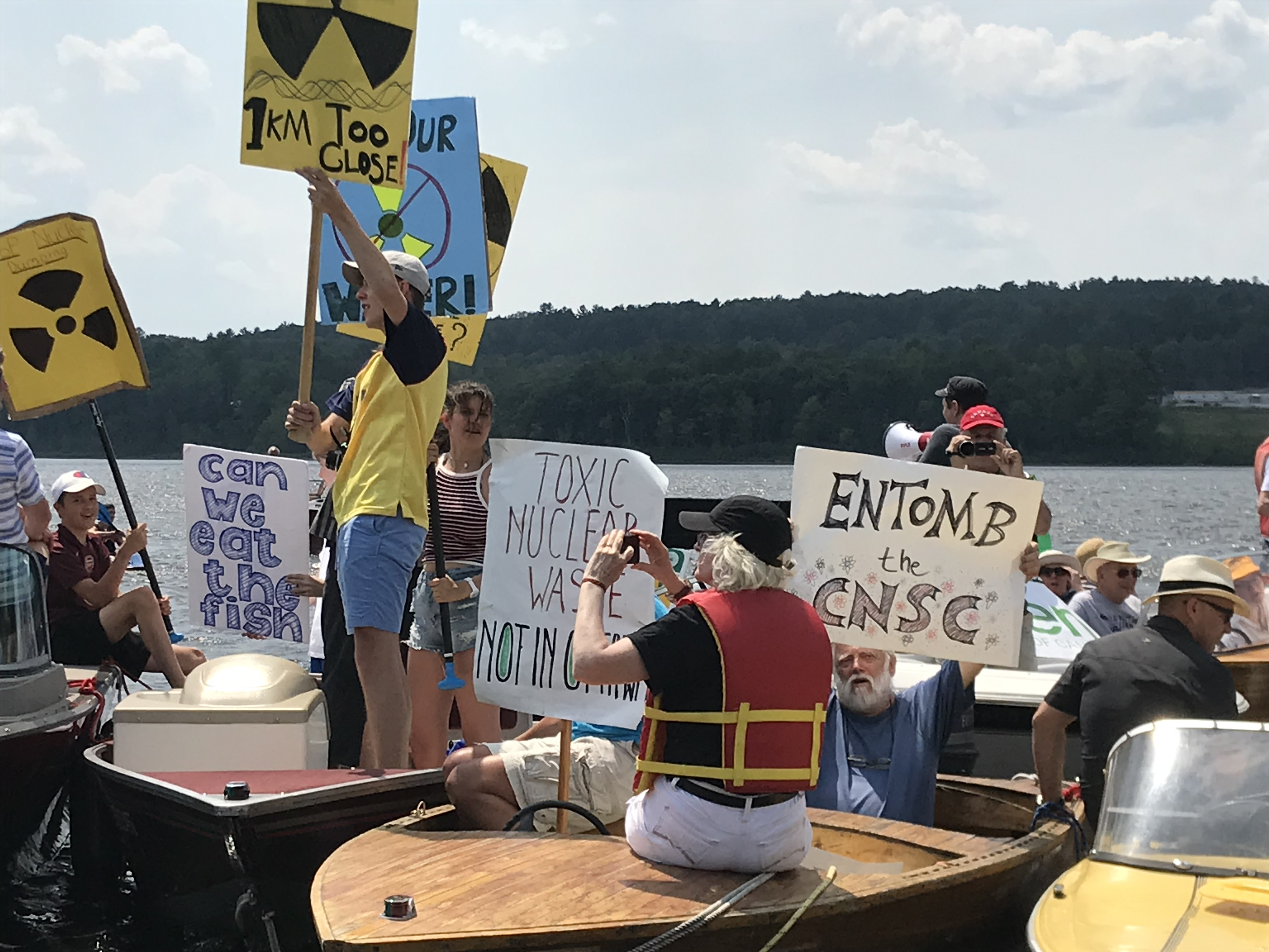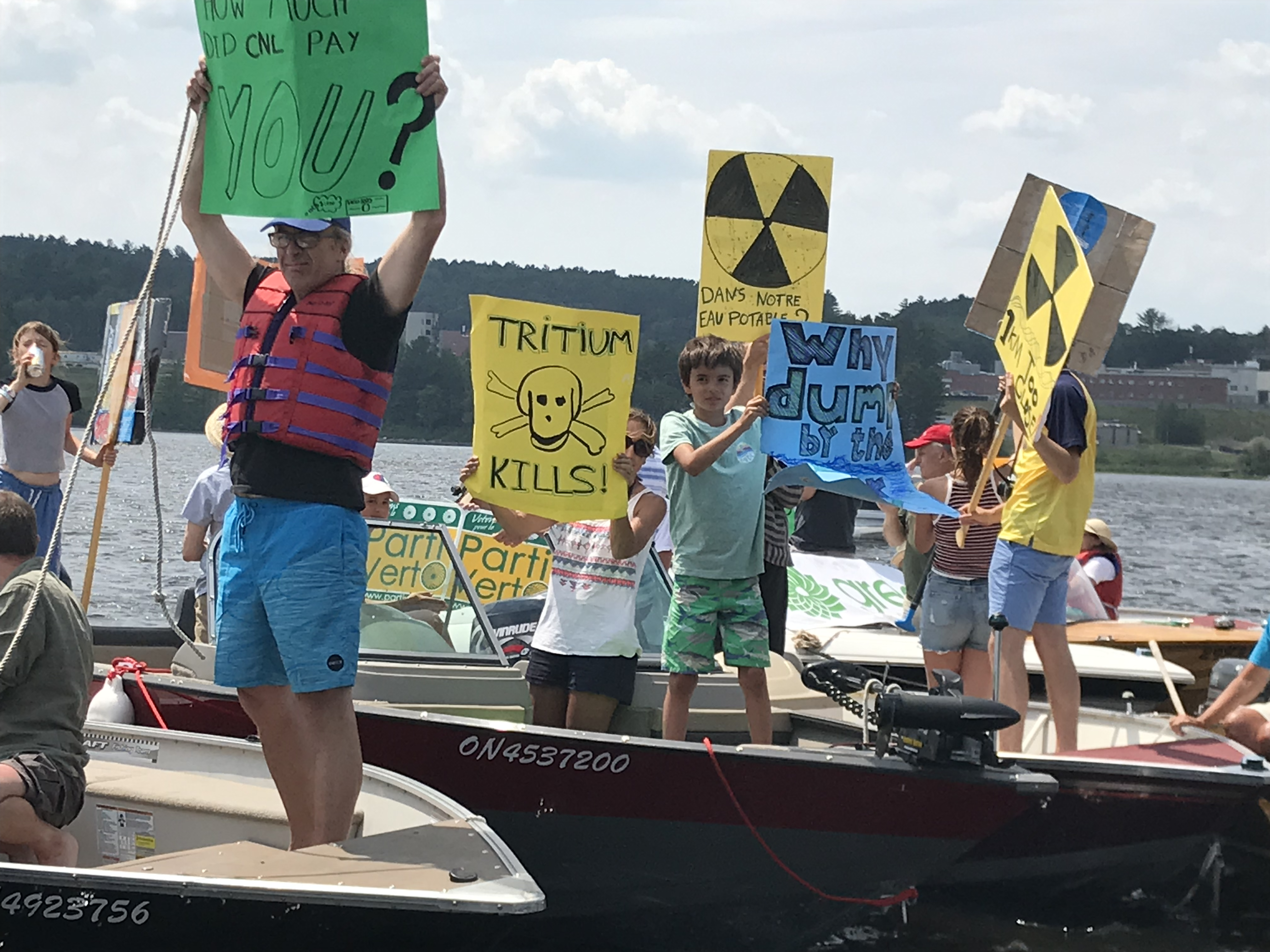 IN THIS PHOTO GREEN PARTY CANDIDATE IN PONTIAC (CLAUDE BERTRAND) IS RELEASING MOCK RADIOACTIVE ISOTOPES INTO THE RIVER – A SYMBOLIC GESTURE (THESE BALLS WERE REMOVED FROM THE WATER A LITTLE LATER)