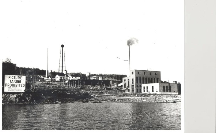 Chalk River Laboratories photographed from the Ottawa River in 1945. It was constructed in 1944. Photo from the National Research Council Canada archives